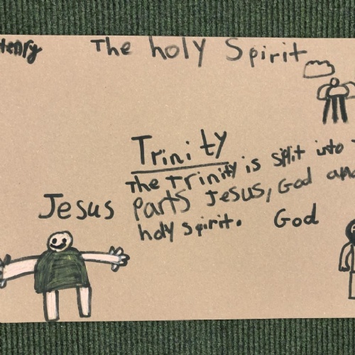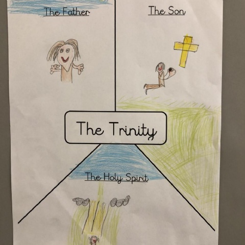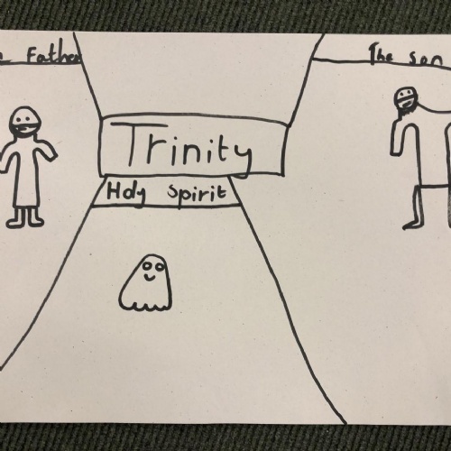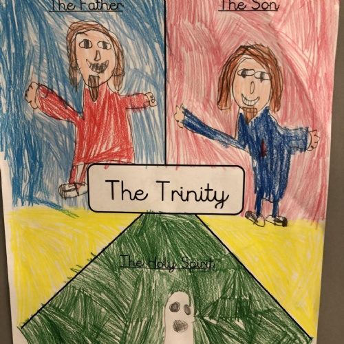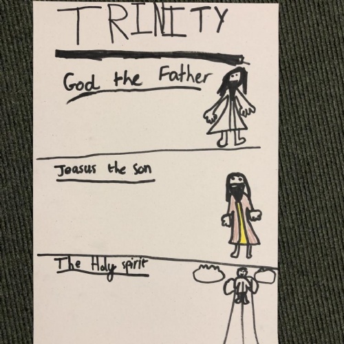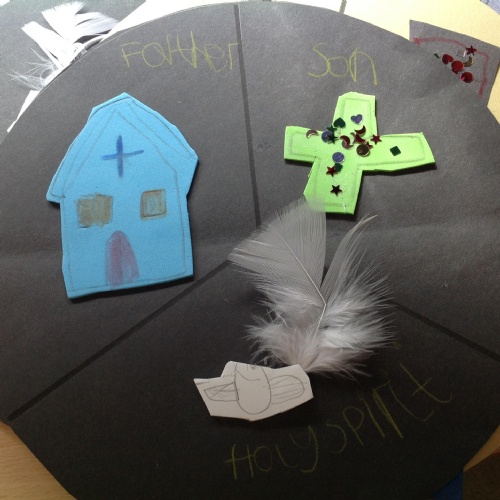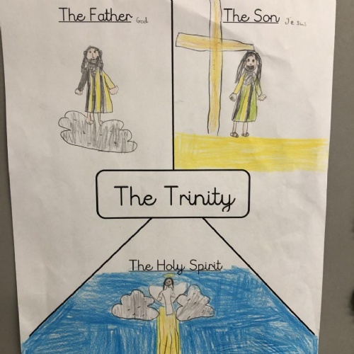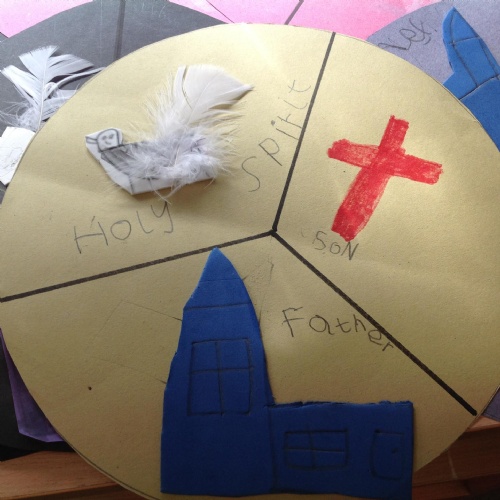 We were reflecting upon there being only one God, but three distinct parts - God the Father, God the Son and God the Holy Spirit. These three parts make up one God: The Holy Trinity.